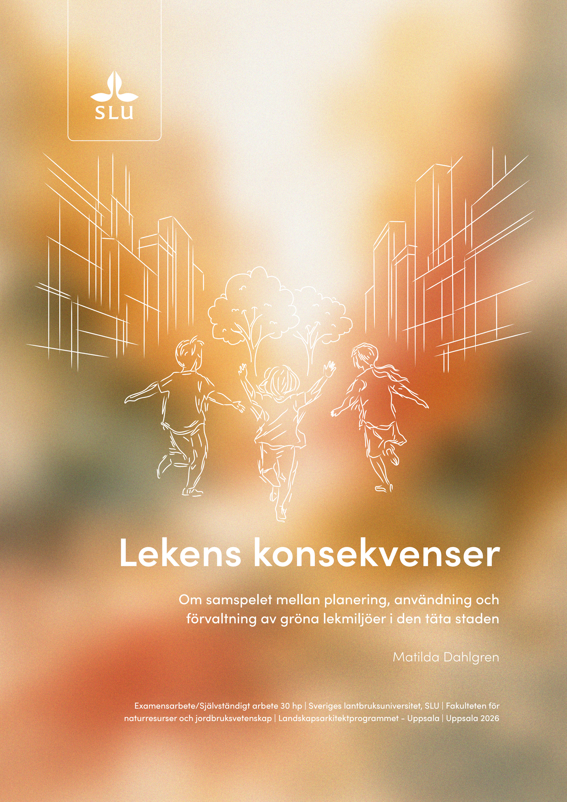 Mitt examensarbete rör gröna lekmiljöer i den täta staden och belönades med högsta betyg.